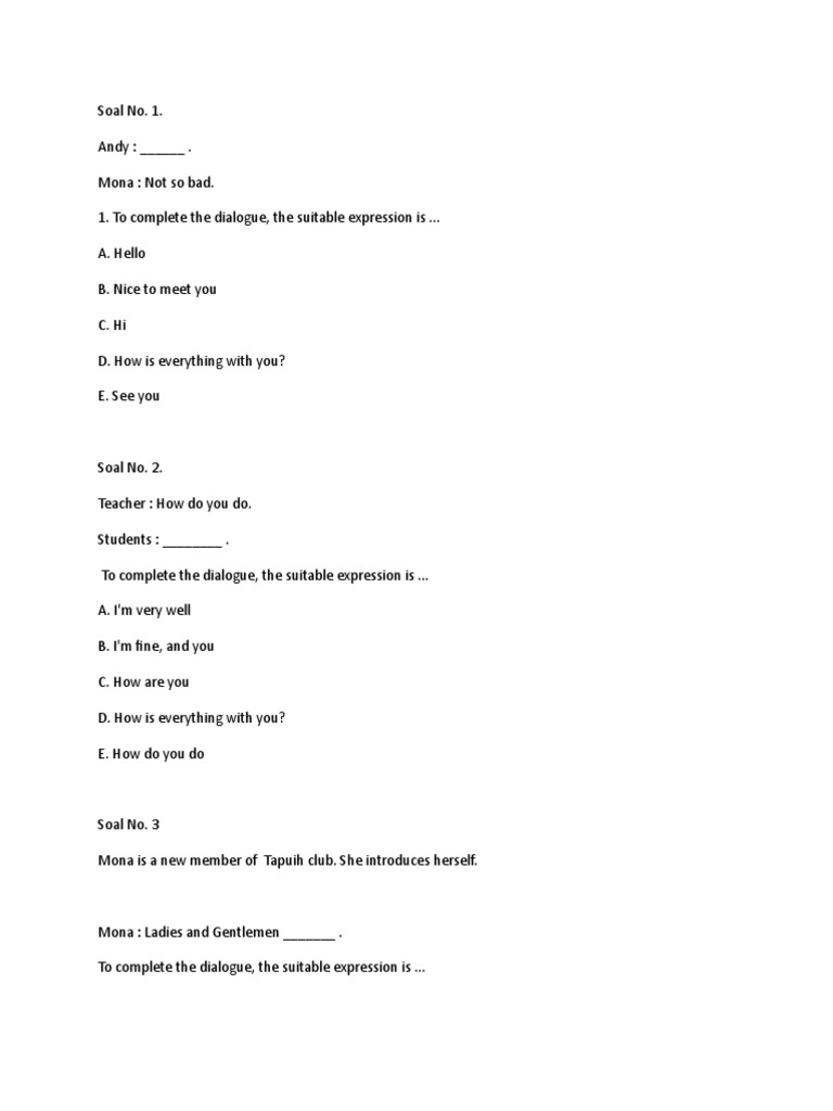 Contoh di atas dapat berbeda sesuai dengan tema percakapan dan orang yang kita ajak berbicara.
