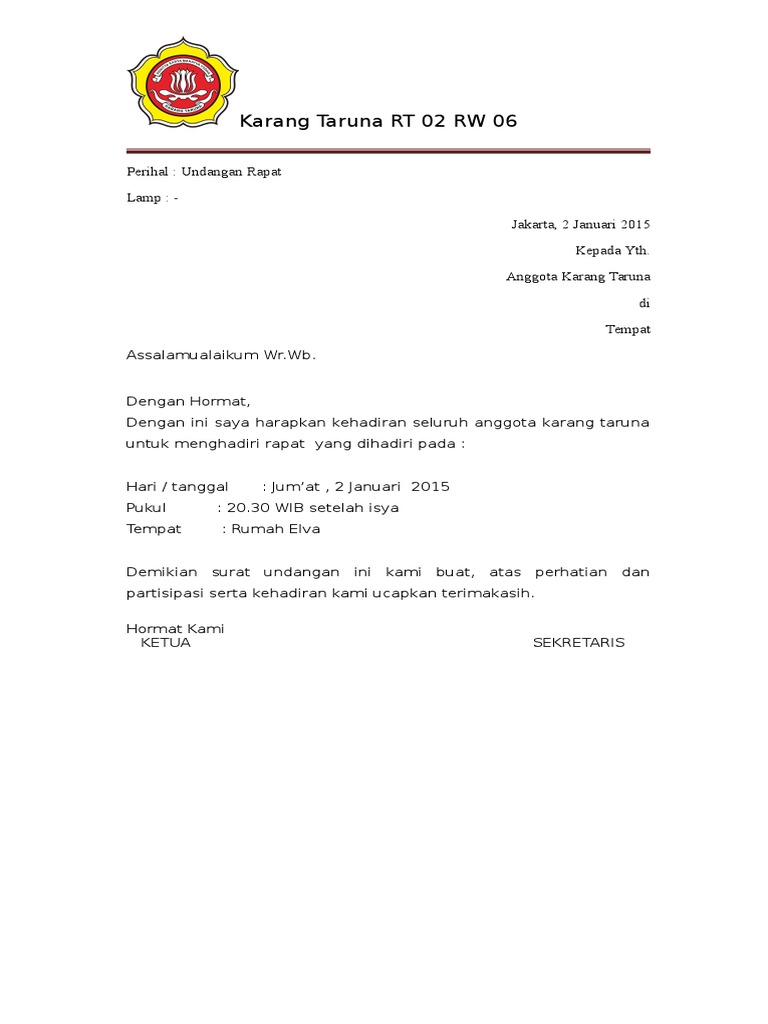 Contoh Surat Undangan Rapat Karang Taruna Pdf : Hasil gambar untuk surat undangan setengah resmi (Dengan ... : Organisasi karang tarun memiliki berbagai program kerja untuk desa, dan tentu dibutuhkan.. Contoh surat undangan resmi dapat digunakan agar surat undangan yang kamu buat sesuai dengan penulisan yang baik dan benar. Pada dasarnya contoh surat undangan rapat dinas beragam sesuai dengan kepentingan intan purwati. Please fill this form, we will try to respond as soon as possible. .taruna manunggal karya 1/1surat undangan rapatkarang taruna manunggal karyakr.gumul. Use the download button below or simple online reader.